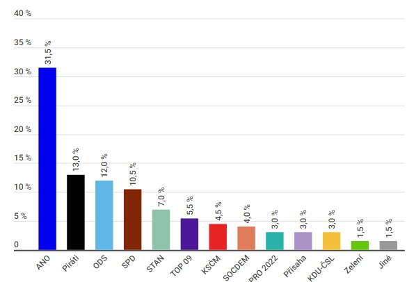 Pokud by se volby do poslanecké sněmovny konaly v lednu, vyhrálo by je s přehledem hnutí ANO. Na druhém místě jsou Piráti s třinácti procenty. Následují strany jako ODS, SPD, STAROSTOVÉ A TOP 09. Vůbec poprvé od posledních sněmovních voleb předstihli Piráti stranu Občanské demokraty. Podle volebního modelu agentury Median za leden by se do Poslanecké sněmovny dostalo šest stran a hnutí.